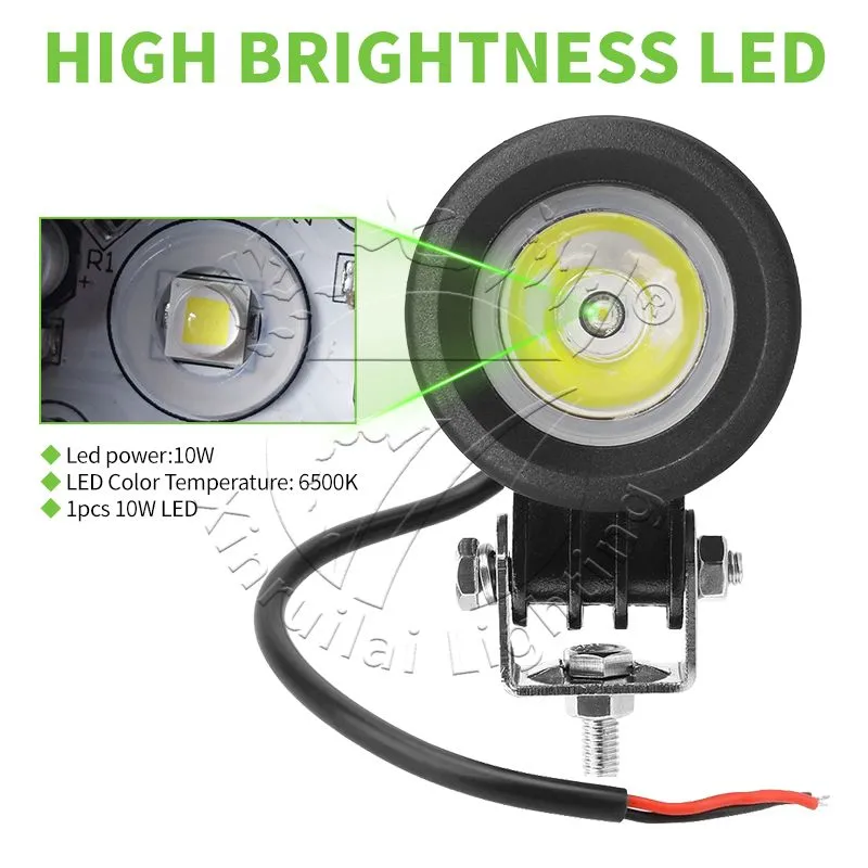 This high-brightness 10W LED spotlight delivers a powerful 6500K white beam, ensuring excellent visibility in dark or low-light conditions. Equipped with a single 10W LED chip, it provides focused illumination with low power consumption and long-lasting durability. The compact design makes it ideal for cars, motorcycles, trucks, ATVs, UTVs, and off-road vehicles.
