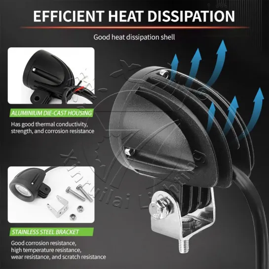 This 10W mini LED spotlight delivers powerful and focused illumination with a choice of white or yellow light. Built with a durable aluminum die-cast housing, stainless steel bracket, and PC lens cover, it offers excellent heat dissipation and long-lasting performance. With IP67 waterproof protection and a working temperature range of -40°C to +85°C, it withstands harsh environments. Compact in size (56mm diameter) and lightweight (200g), it is perfect for cars, motorcycles, trucks, ATVs, UTVs, and off-road adventures. Offering over 30,000 hours of lifespan, this LED spotlight is a reliable choice for auxiliary lighting.
