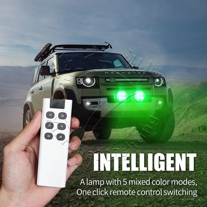 The top off-road lighting choice! Offers 5 flexible color modes, remote control, and adjustable brightness (24W-72W). Crafted with rugged aluminum housing, IP67 waterproofing, and vibration resistance for tough environments. Compact, energy-saving, and simple to install. Ideal for boosting visibility and style on every adventure!