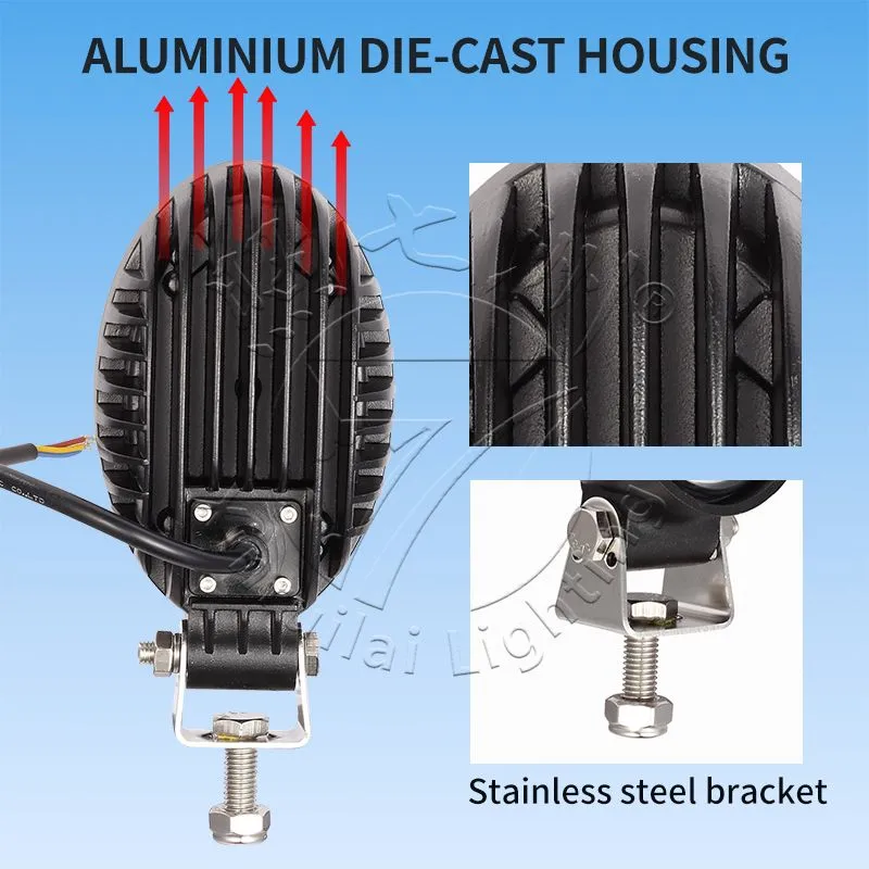 Built with a durable aluminium die-cast housing, this LED work light provides excellent heat dissipation for long-lasting performance. The stainless steel mounting bracket ensures secure installation and strong resistance to rust, corrosion, and vibration. Designed for tough environments, it delivers reliable lighting for trucks, forklifts, off-road vehicles, and heavy-duty equipment.