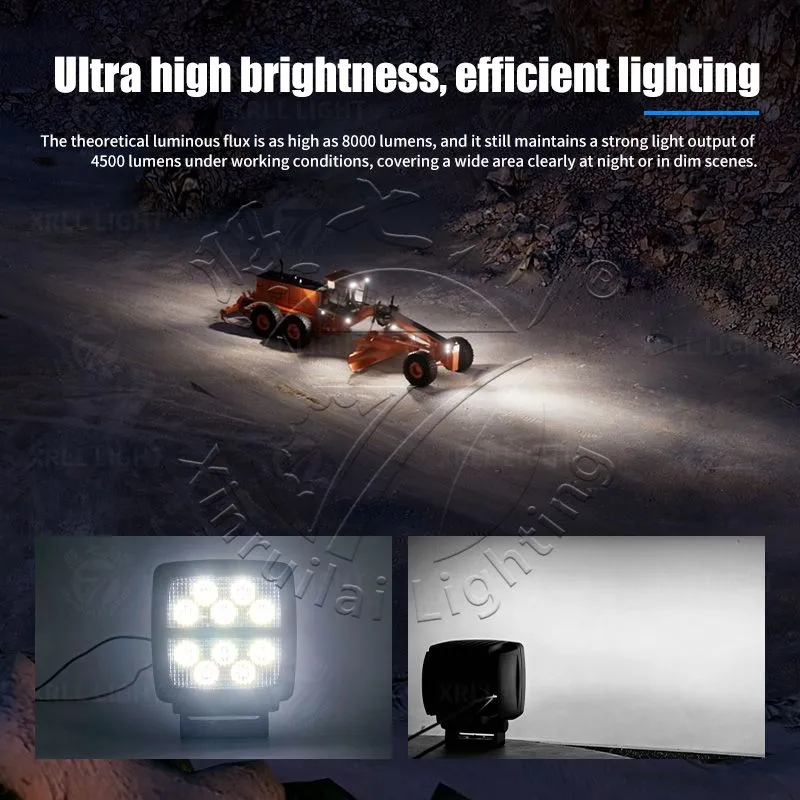 The LED work light provides up to 8000 lumens of theoretical luminous flux and maintains 4500 lumens in real working conditions. It covers a wide area with clear, powerful illumination at night or in dim environments, ensuring safe and efficient operations.
