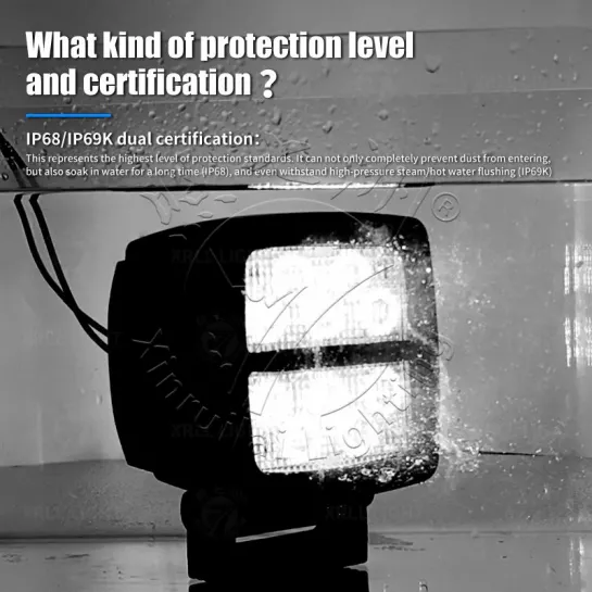 Certified with IP68/IP69K, the LED light is completely dustproof and waterproof. It can be submerged in water for long periods (IP68) and withstands high-pressure steam or hot water flushing (IP69K), ensuring reliability in the harshest working conditions.